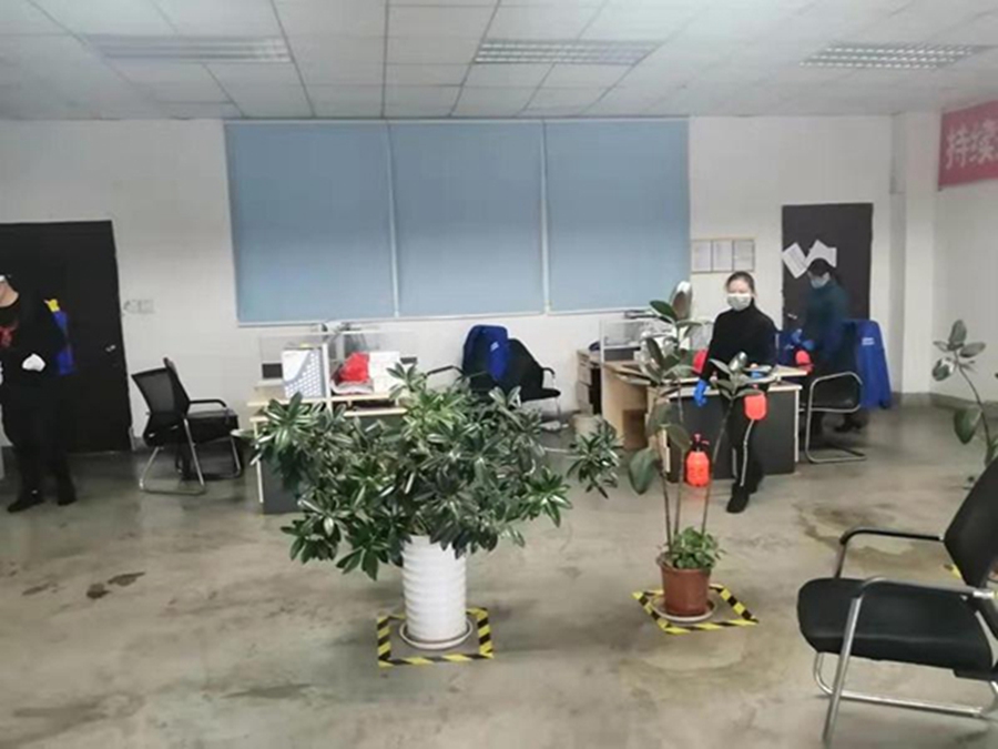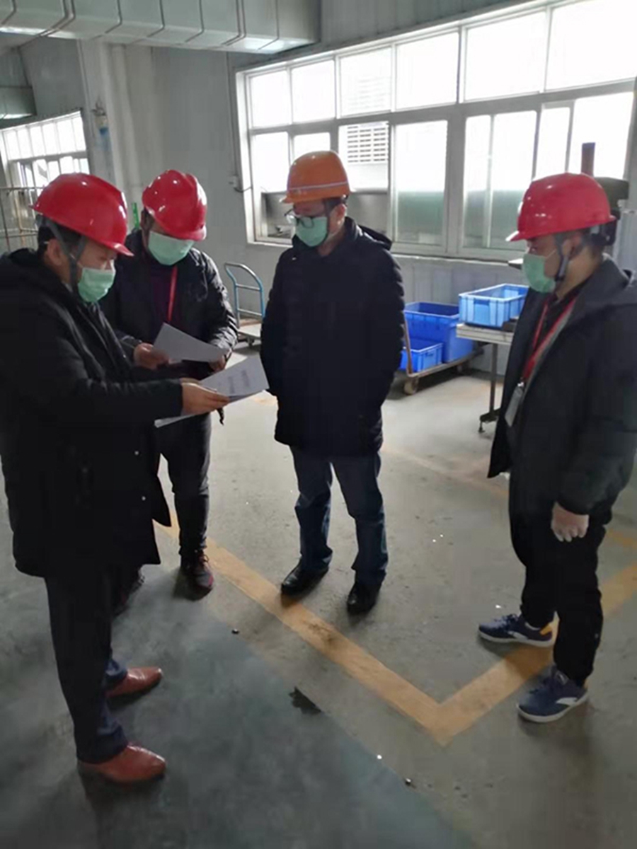 复工当天,吴章杰总经理带队检查各部门防疫工作执行情况,仔细检查员工健康监测(体温、消毒)、人员网格化排查、防疫知识宣传、员工正确佩戴口罩、重点区域消毒、食堂就餐安排等情况,并强调一定要建立疫情防控体系,把员工健康安全放在复工工作的首位,确保防疫工作与复工复产两不误,坚决打赢此次防疫“攻坚战”!