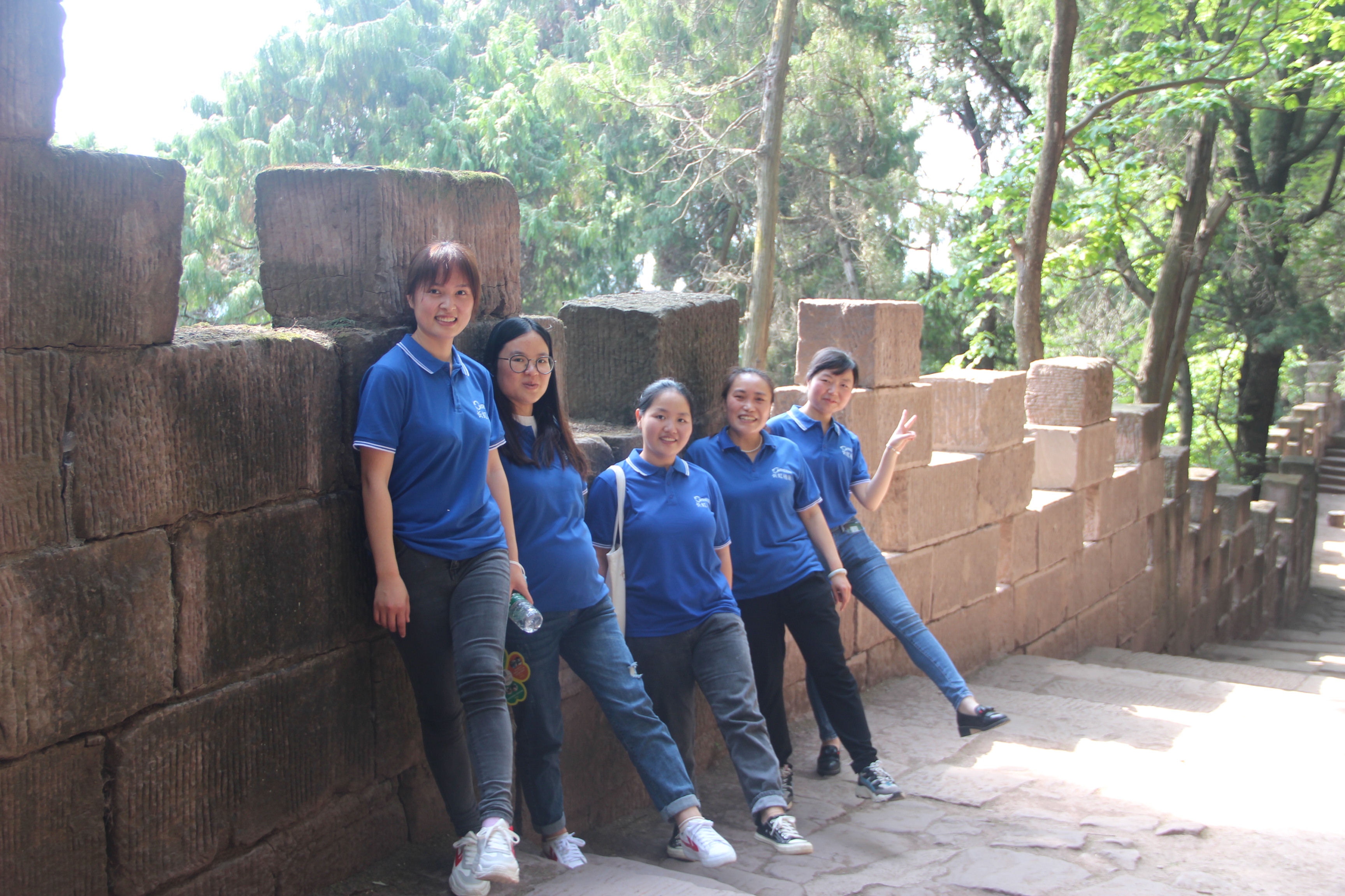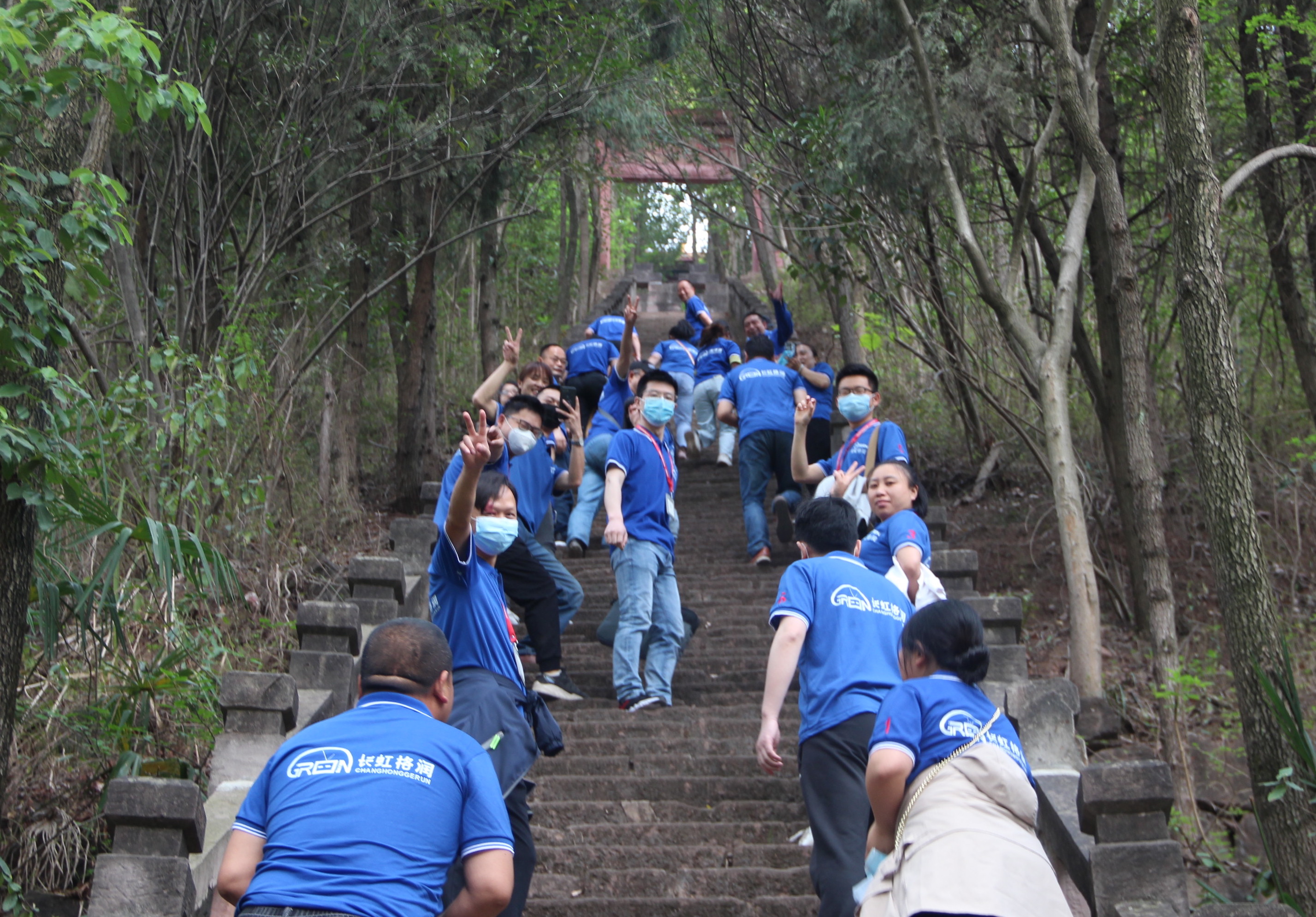整条石阶路线陡峭险峻,山上温度也忽高忽低,但伙伴们登山的热情却丝毫不受影响,情绪高昂,登山先锋队更是越攀越勇,你追我赶,竟比车队早一步到达目的地。