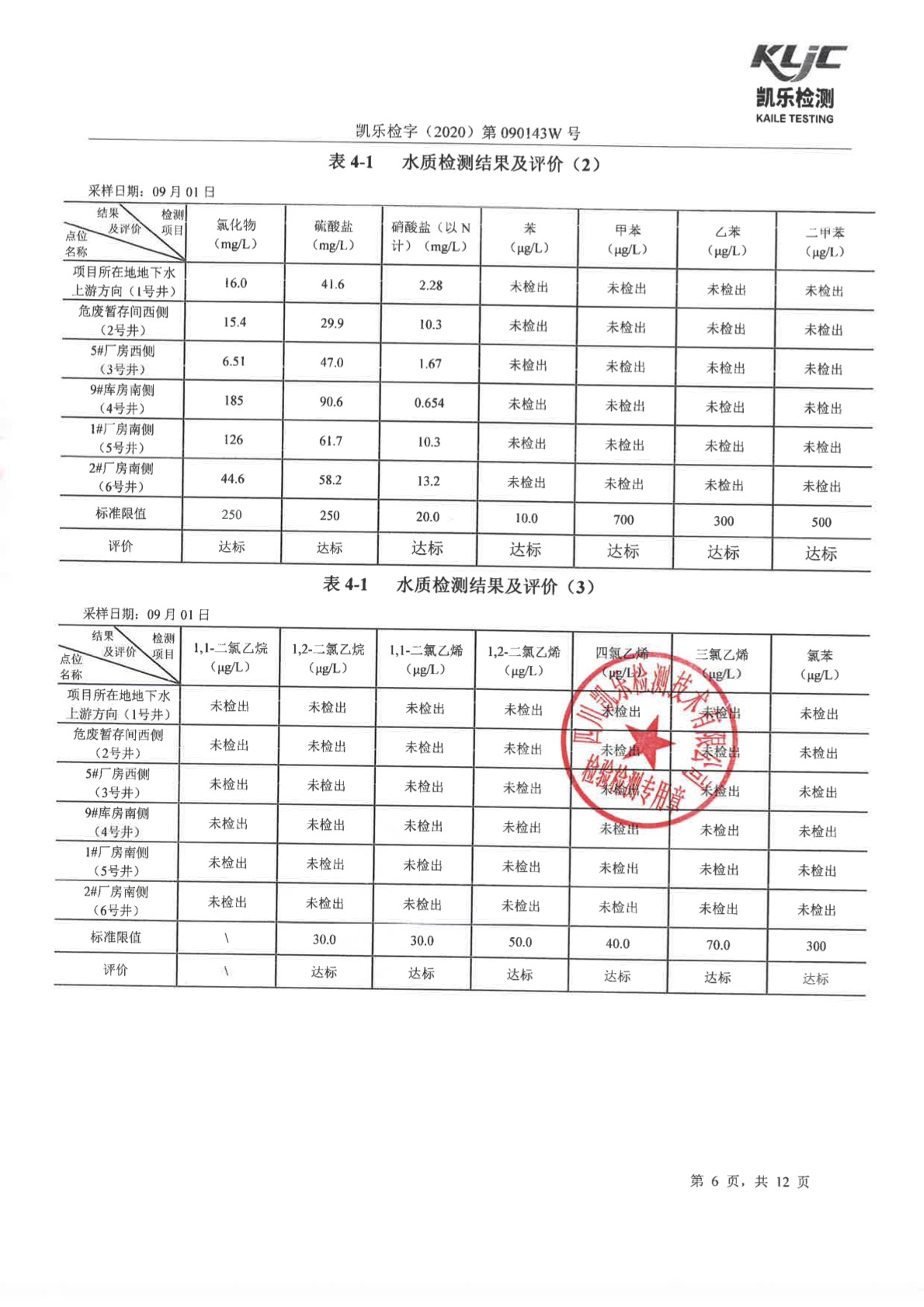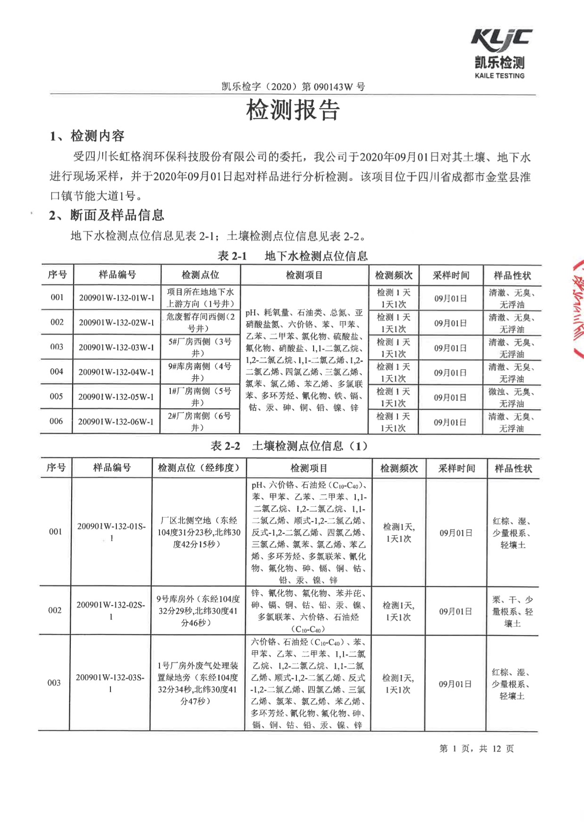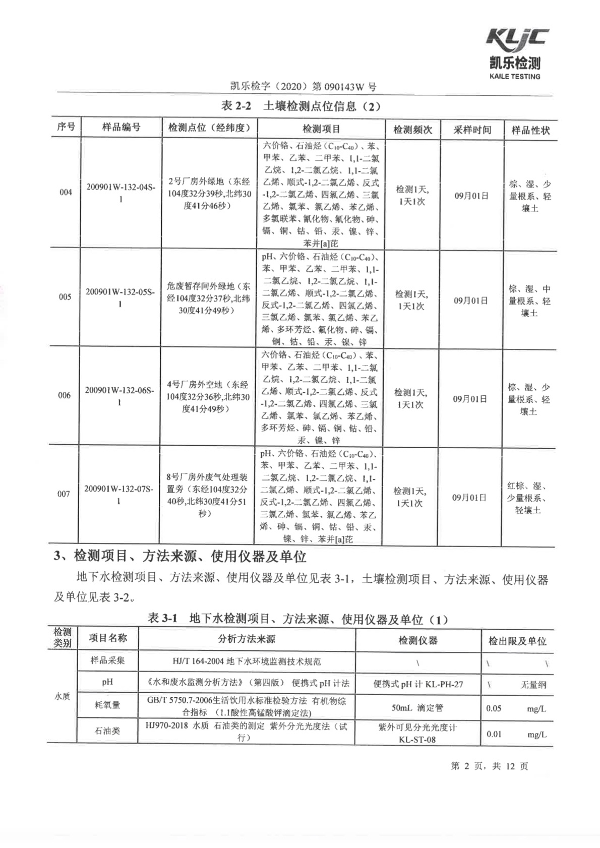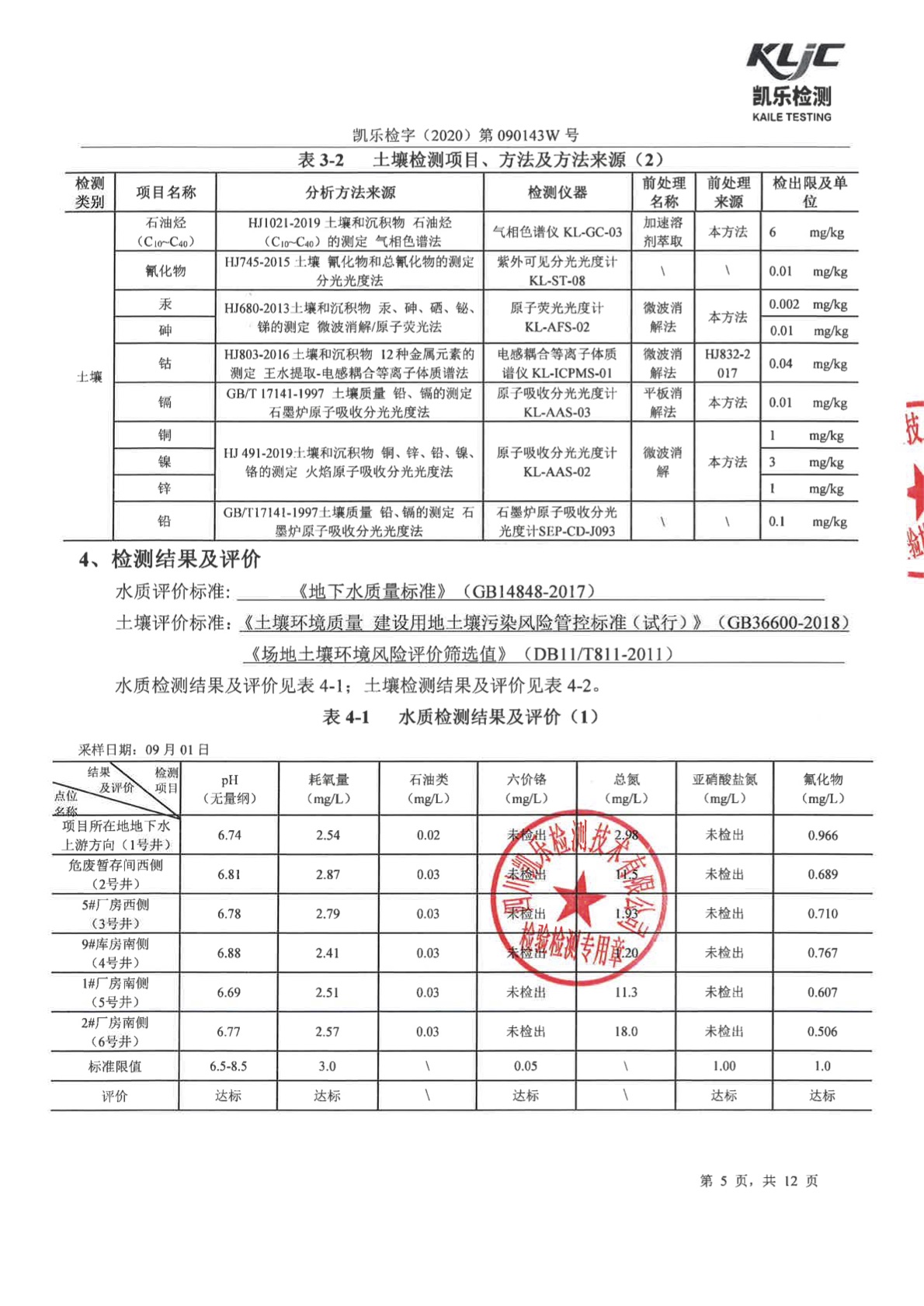 凯乐检字(2020)第090143W号(土壤、地下水检测)