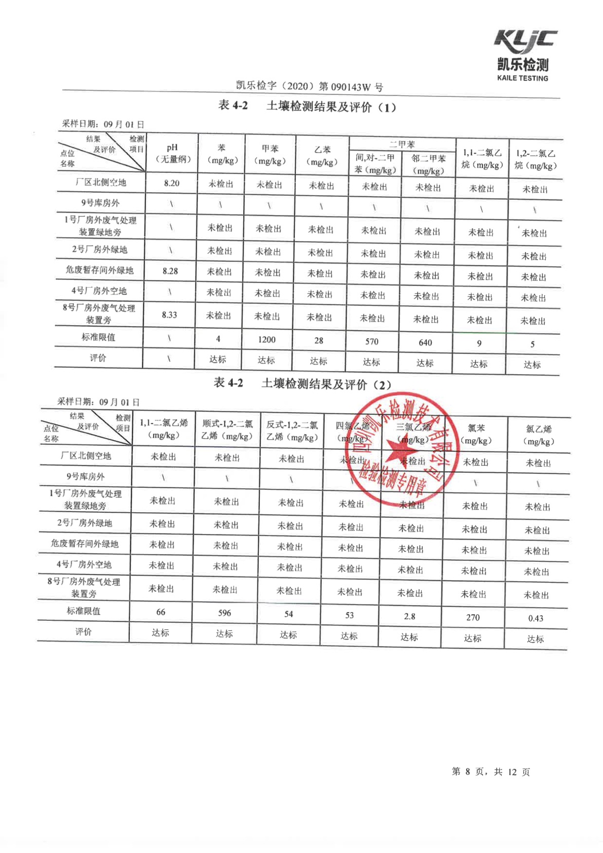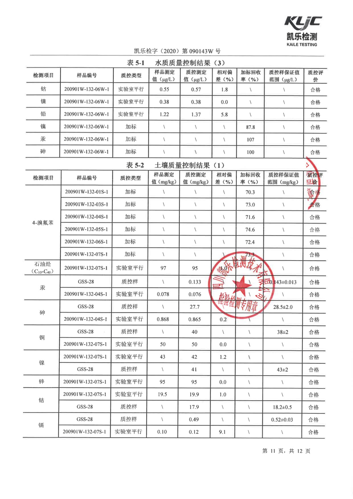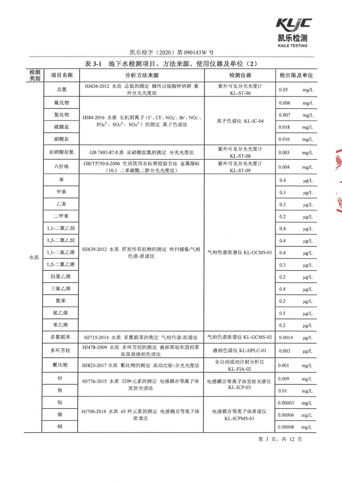 凯乐检字(2020)第090143W号(土壤、地下水检测)