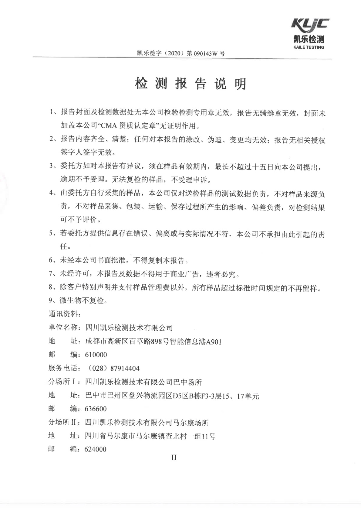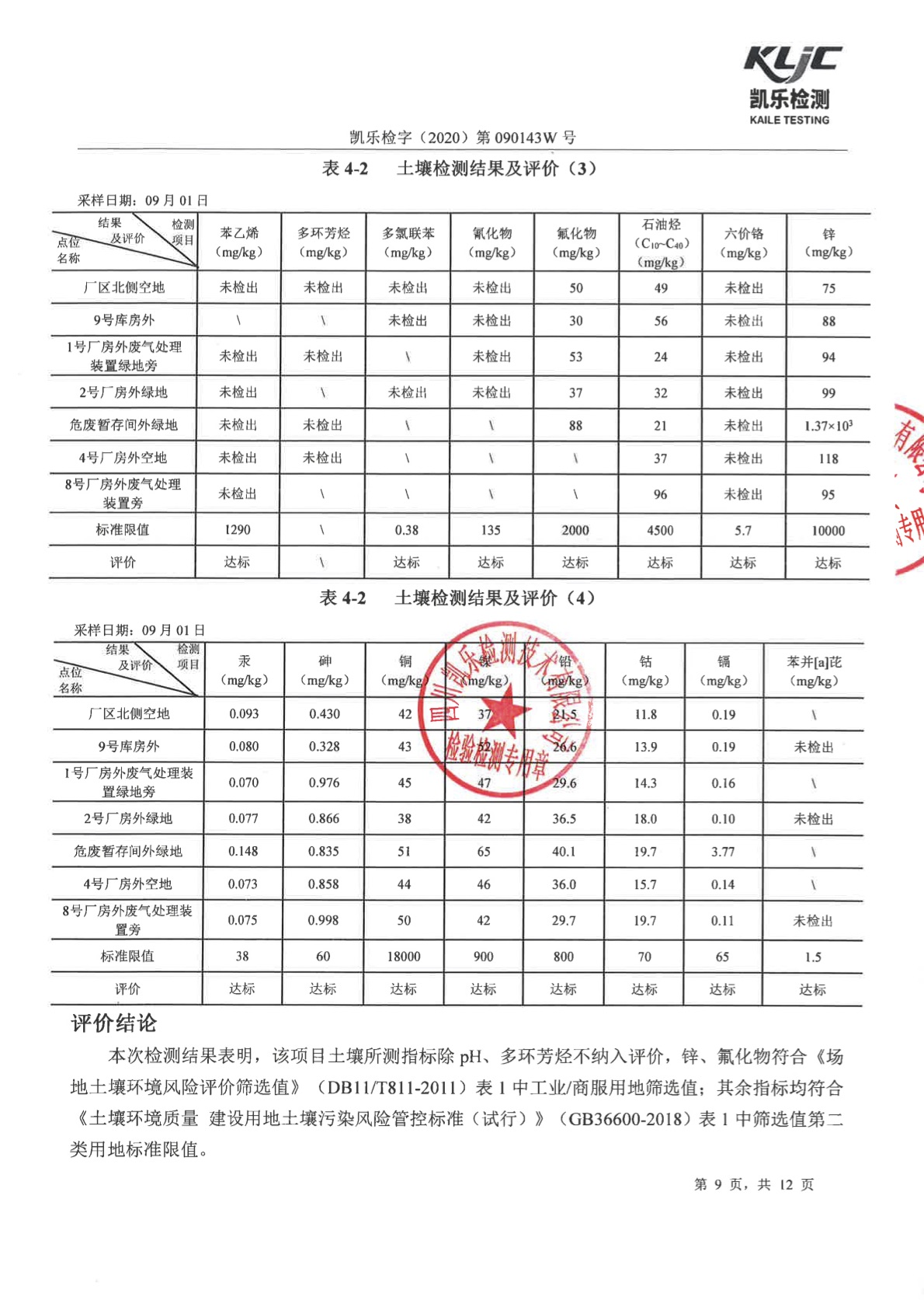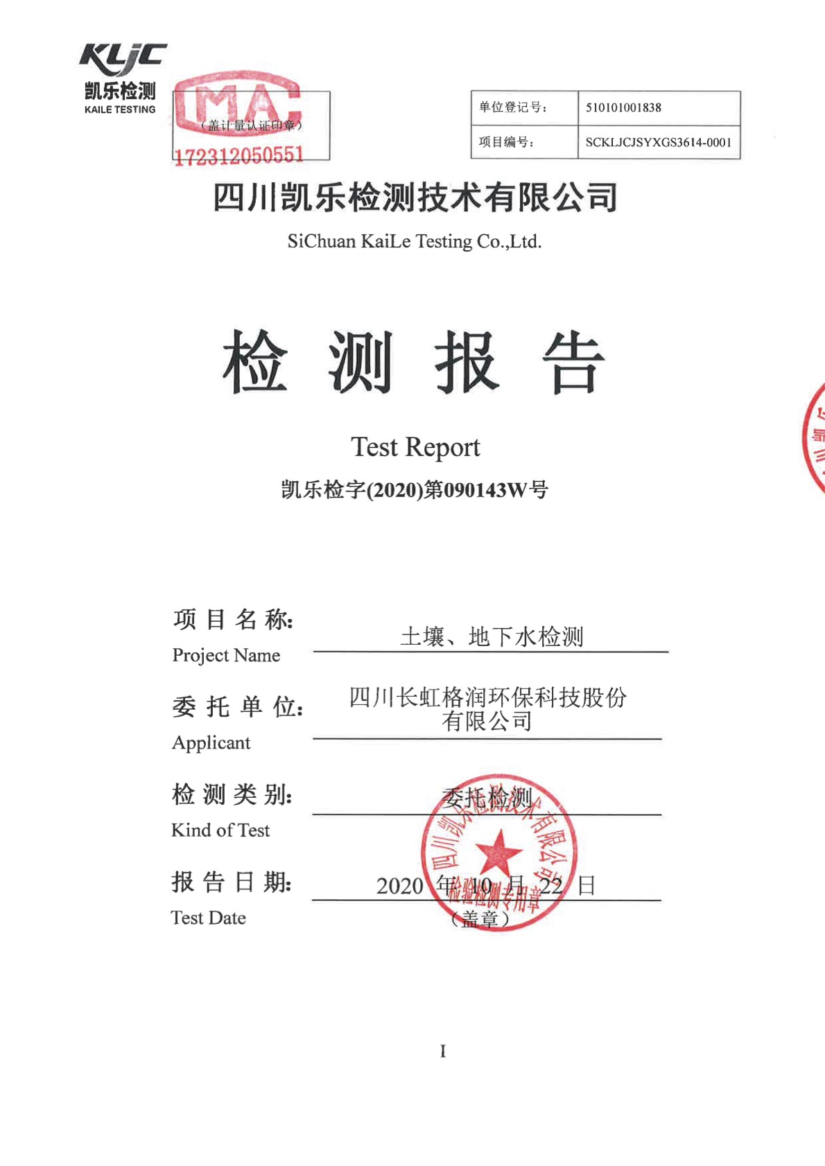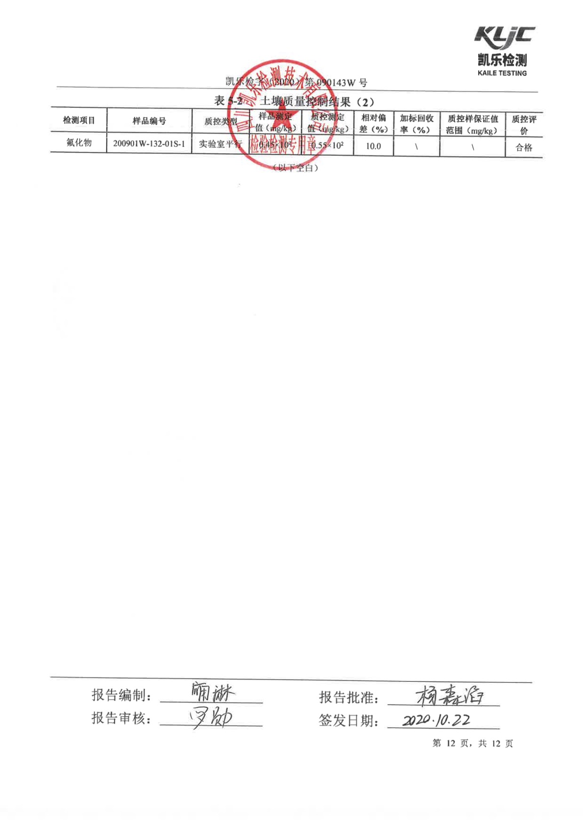 凯乐检字(2020)第090143W号(土壤、地下水检测)