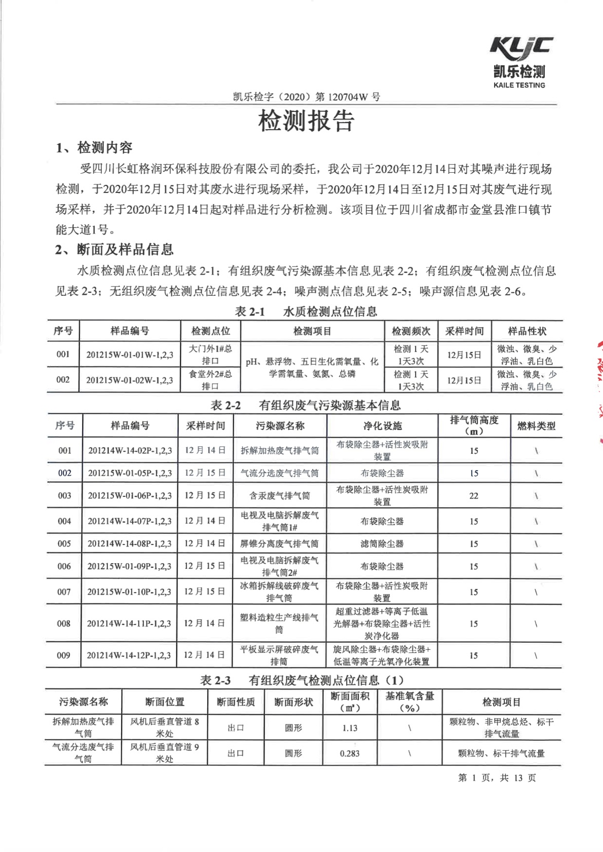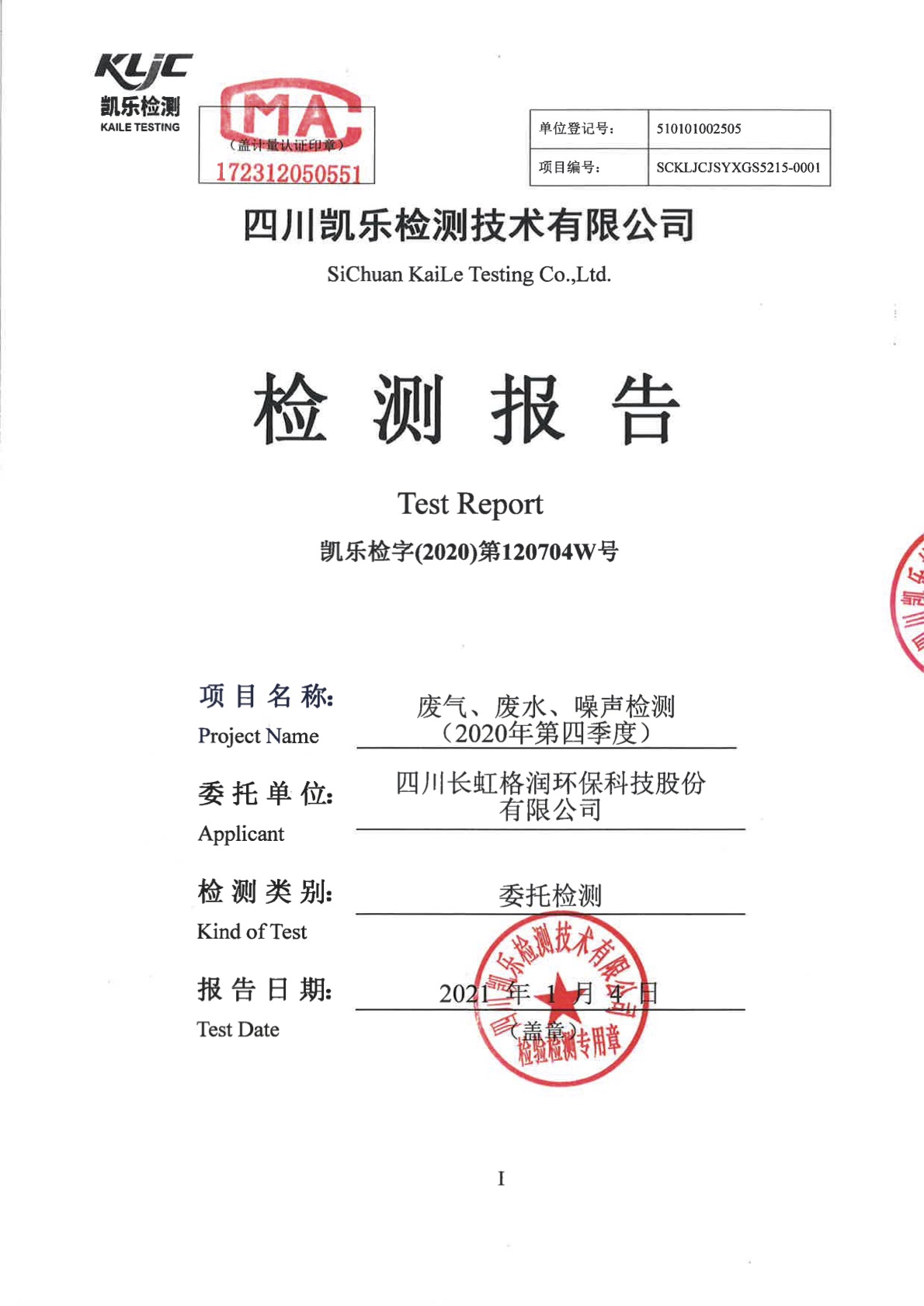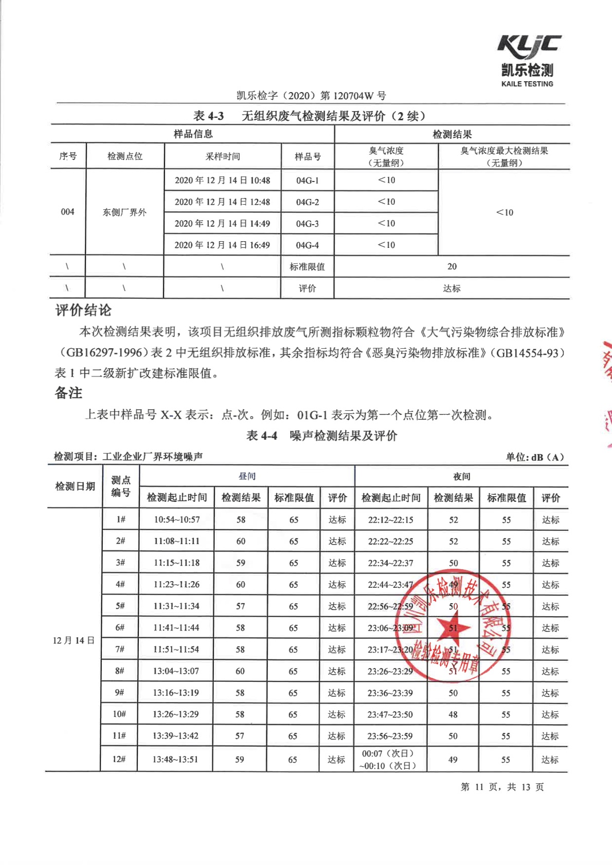 凯乐检字(2020)第120704W号-废气、废水、噪声检测(2020年第四季度)