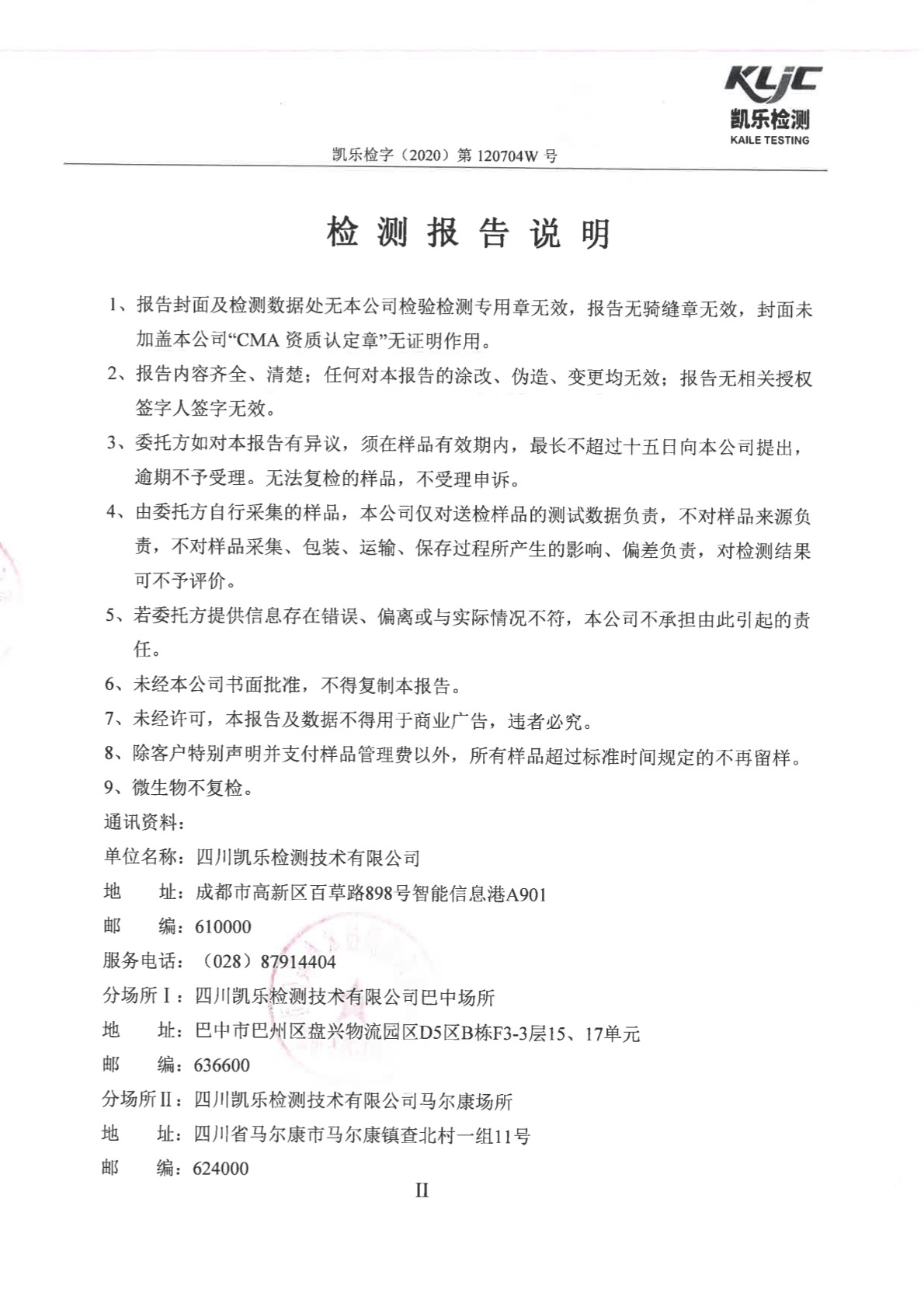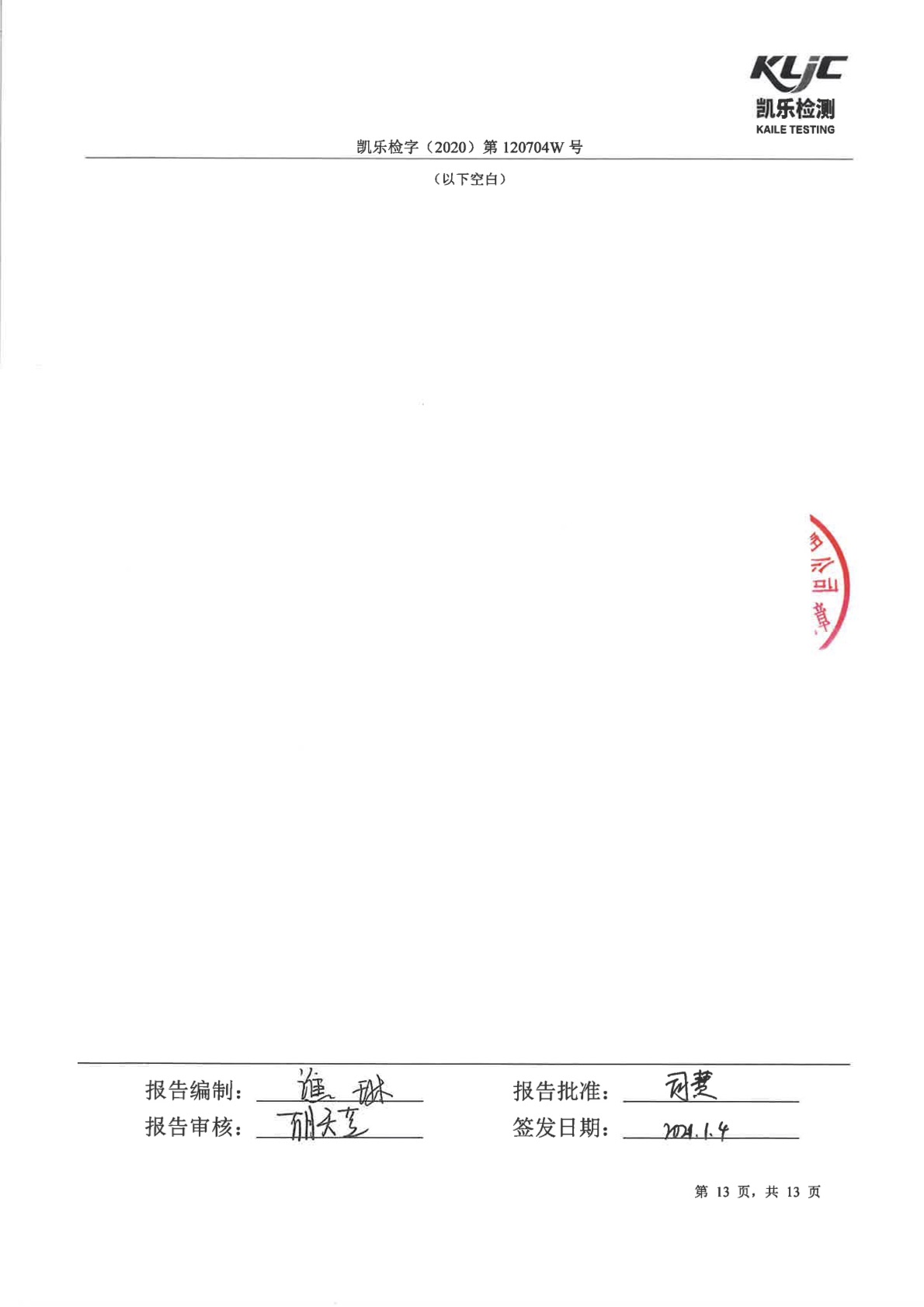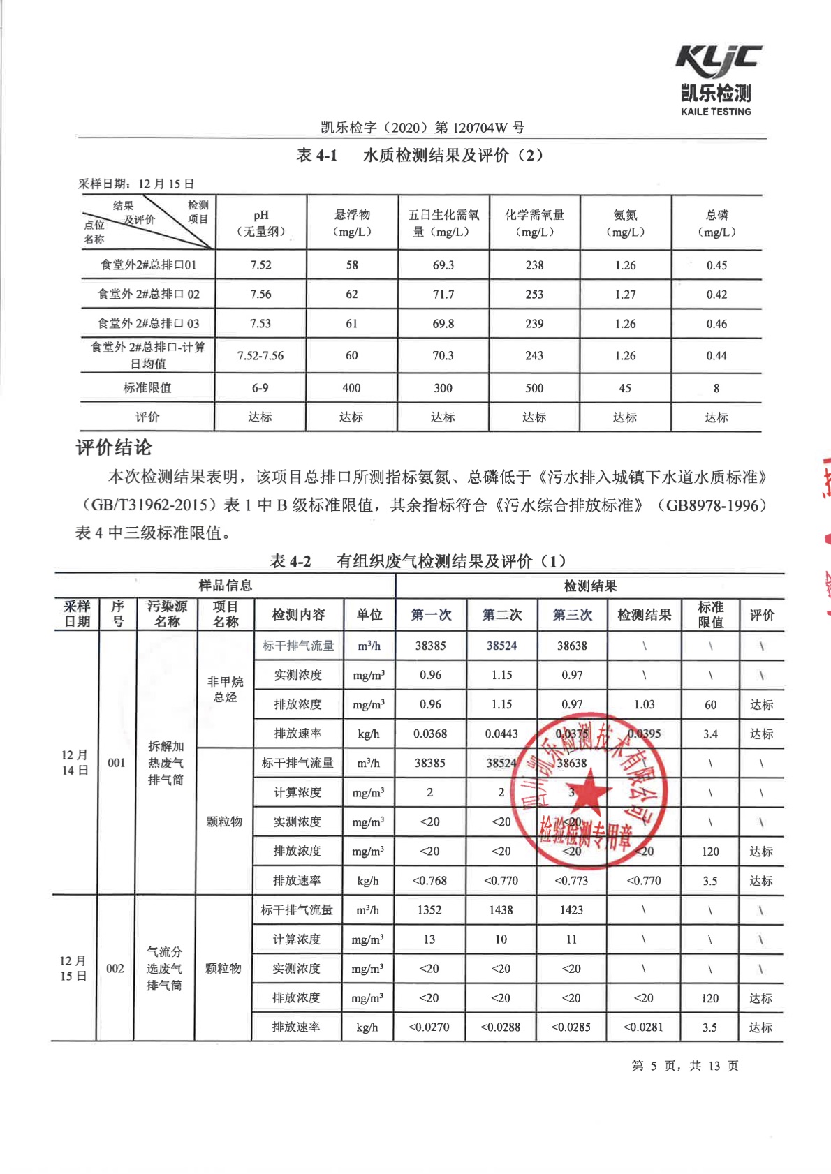 凯乐检字(2020)第120704W号-废气、废水、噪声检测(2020年第四季度)