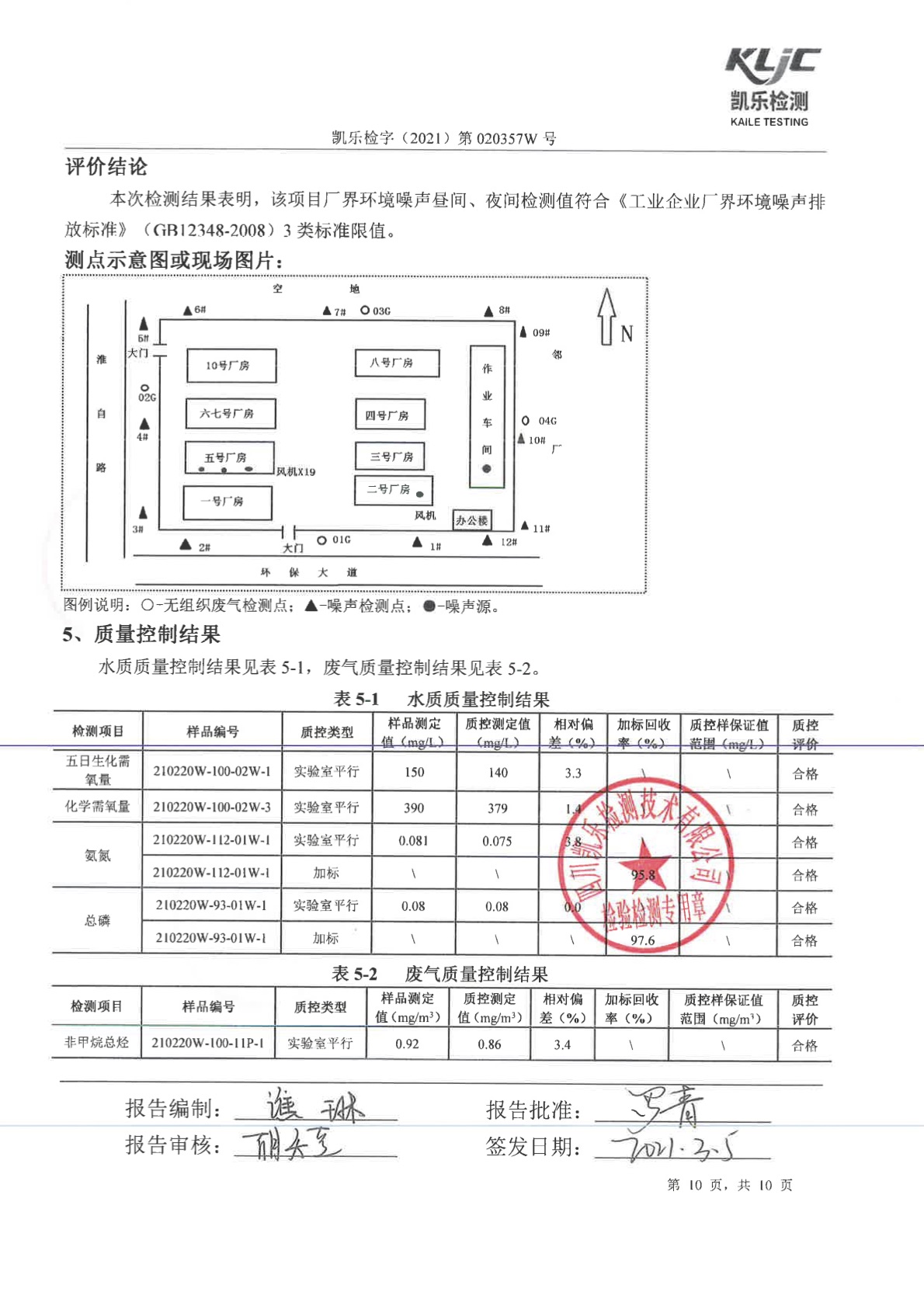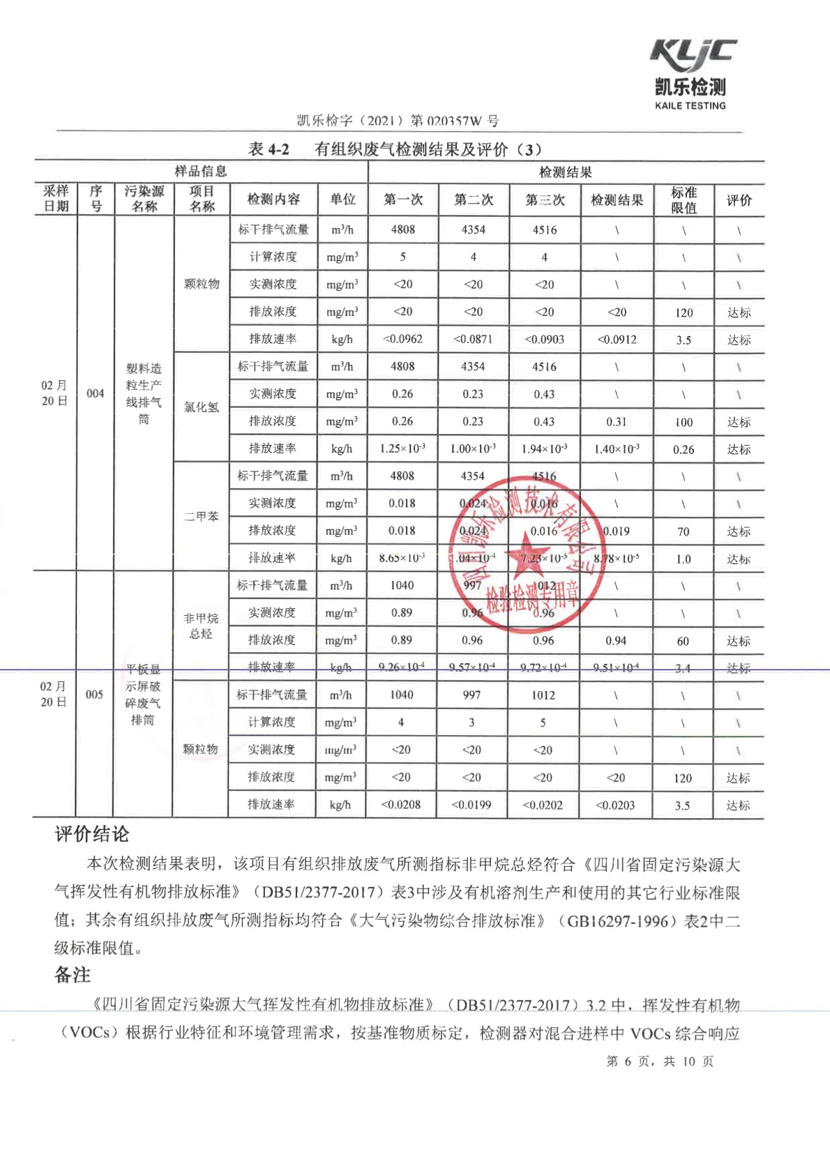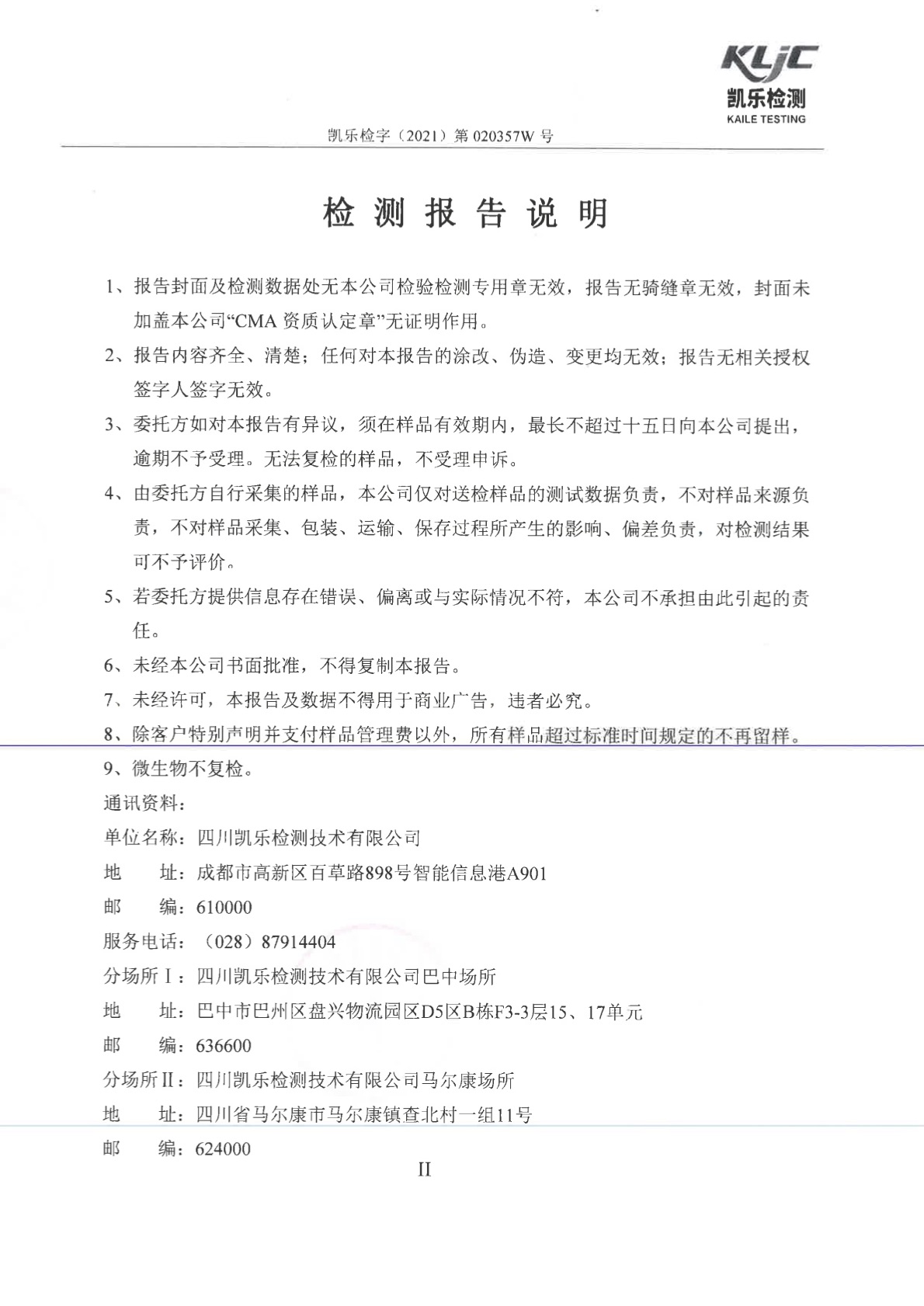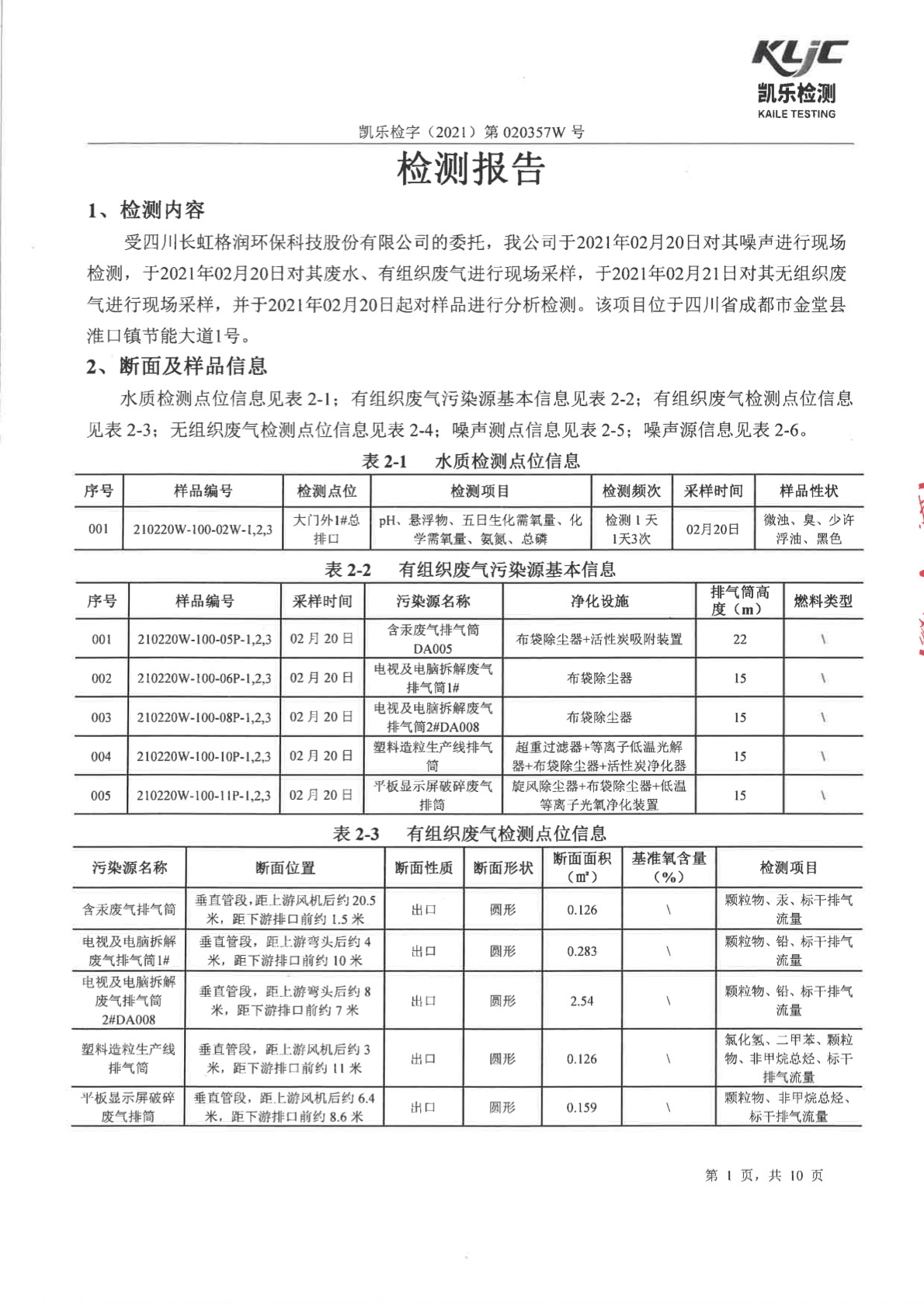 长虹格润第1季度检测报告 凯乐检字(2021)第020357W号